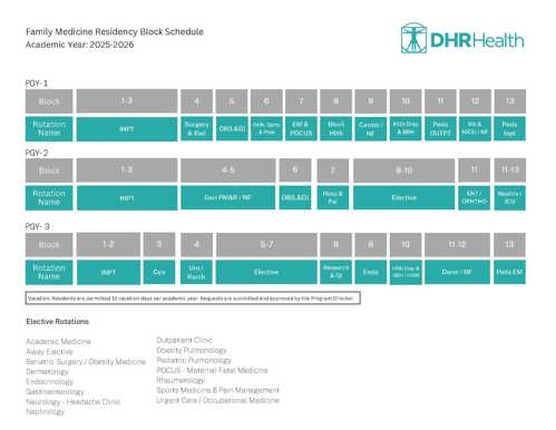 Welcome to the DHR Health Family Medicine Residency Program. Founded in 2022, our newly established program provides comprehensive, high-quality, family-centered care to all patients, every encounter. Our clinical and educational mission is to provide compassionate, team-based healthcare in a culturally attuned, cost-effective manner. Uniquely located at the US-Mexico border of South Texas, we service a diverse community and patient population, rich in culture and socioeconomic backgrounds, meeting the educational mission and needs of our program.